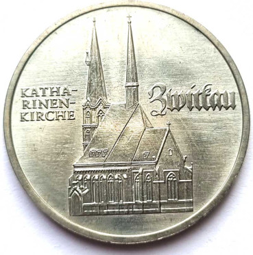 5 марок - 500 лет со дня рождения Томаса Мюнцера, Церковь Св. Екатерины в Цвиккау, Германия, 1989 год