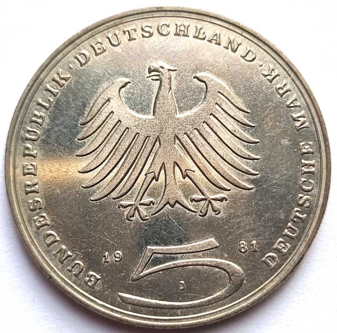 5 марок - 200 лет со дня смерти Готхольда Эфраима Лессинга, Германия, 1981 год