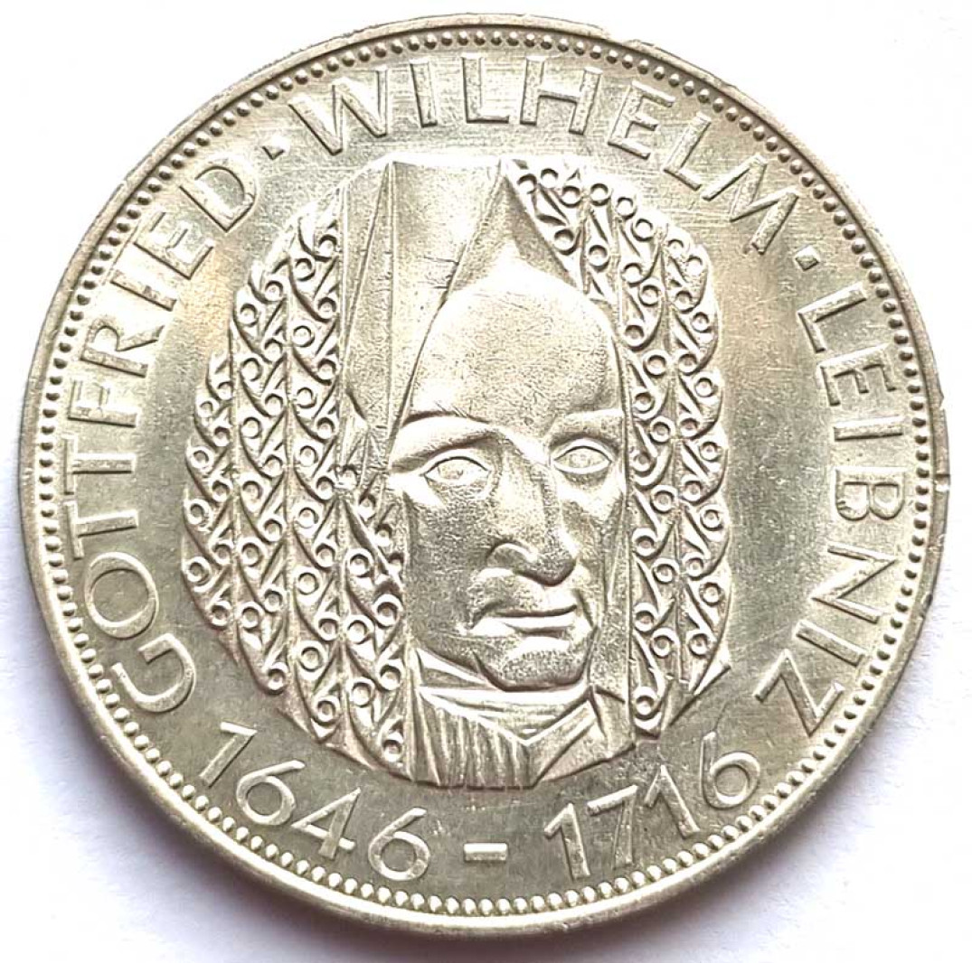 5 марок - 250 лет со дня смерти Готфрида Вильгельма Лейбница, Германия, 1966 год, серебро