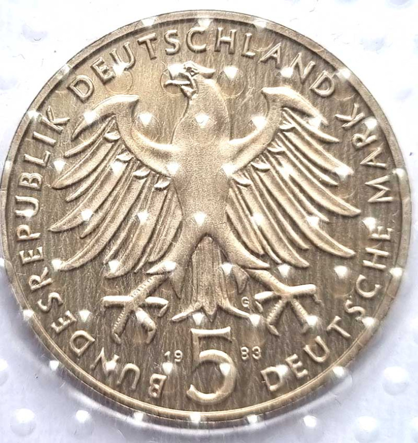 5 марок - 500 лет со дня рождения Мартина Лютера, Германия, 1983 год, в запайке