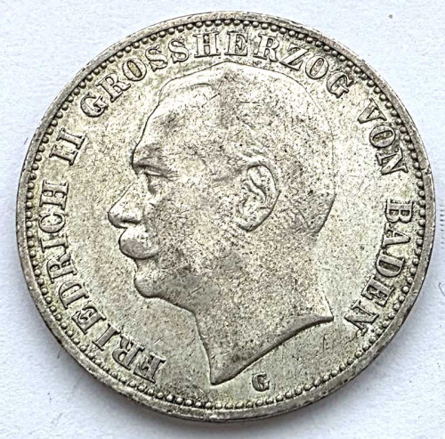 3 марки - Баден Фридрих 2, 1910 год, Германия, серебро