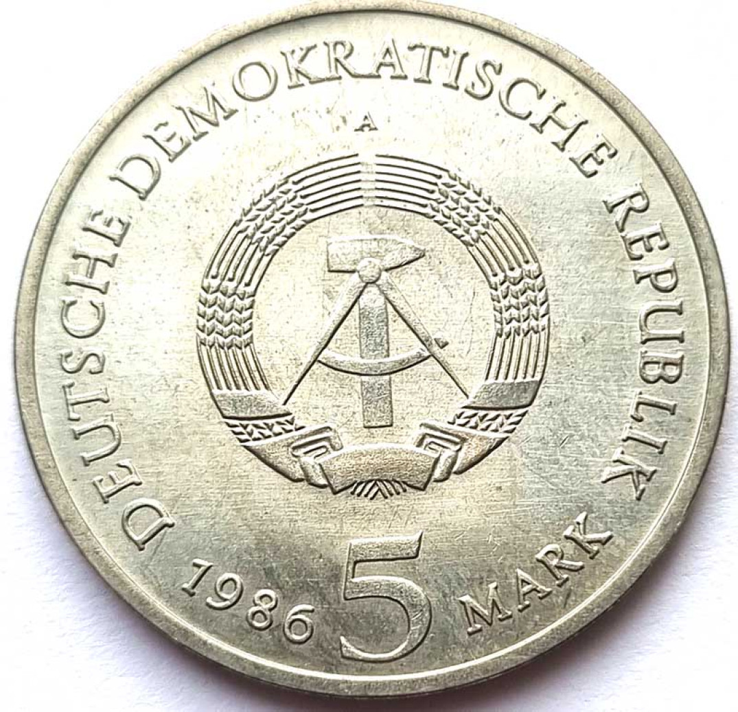 5 марок - Дворец Сан-Суси в Потсдаме, Германия, 1986 год