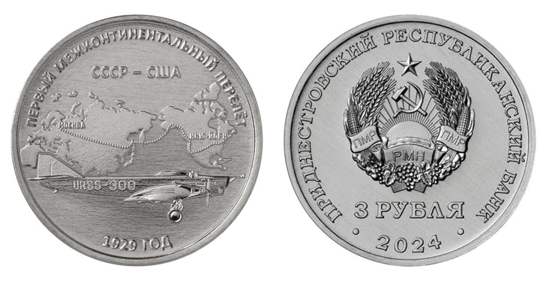 3 рубля - 95 лет первому межконтинентальному перелету, Приднестровье, 2024 год