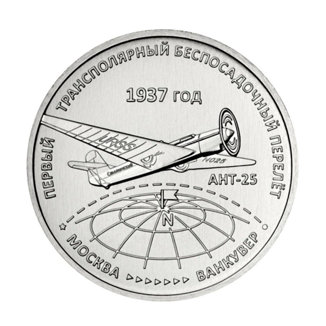 3 рубля - Первый трансполярный беспосадочный перелёт. 1937 год, Приднестровье, 2024 год