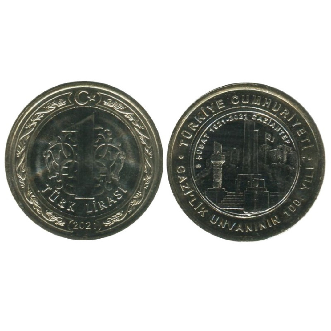 1 лира - 100 лет Газиантепу, Турция, 2021 год