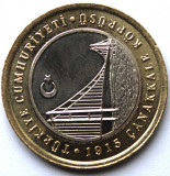 1 лира - Мост Чанаккале 1915 года, Турция, 2022 год