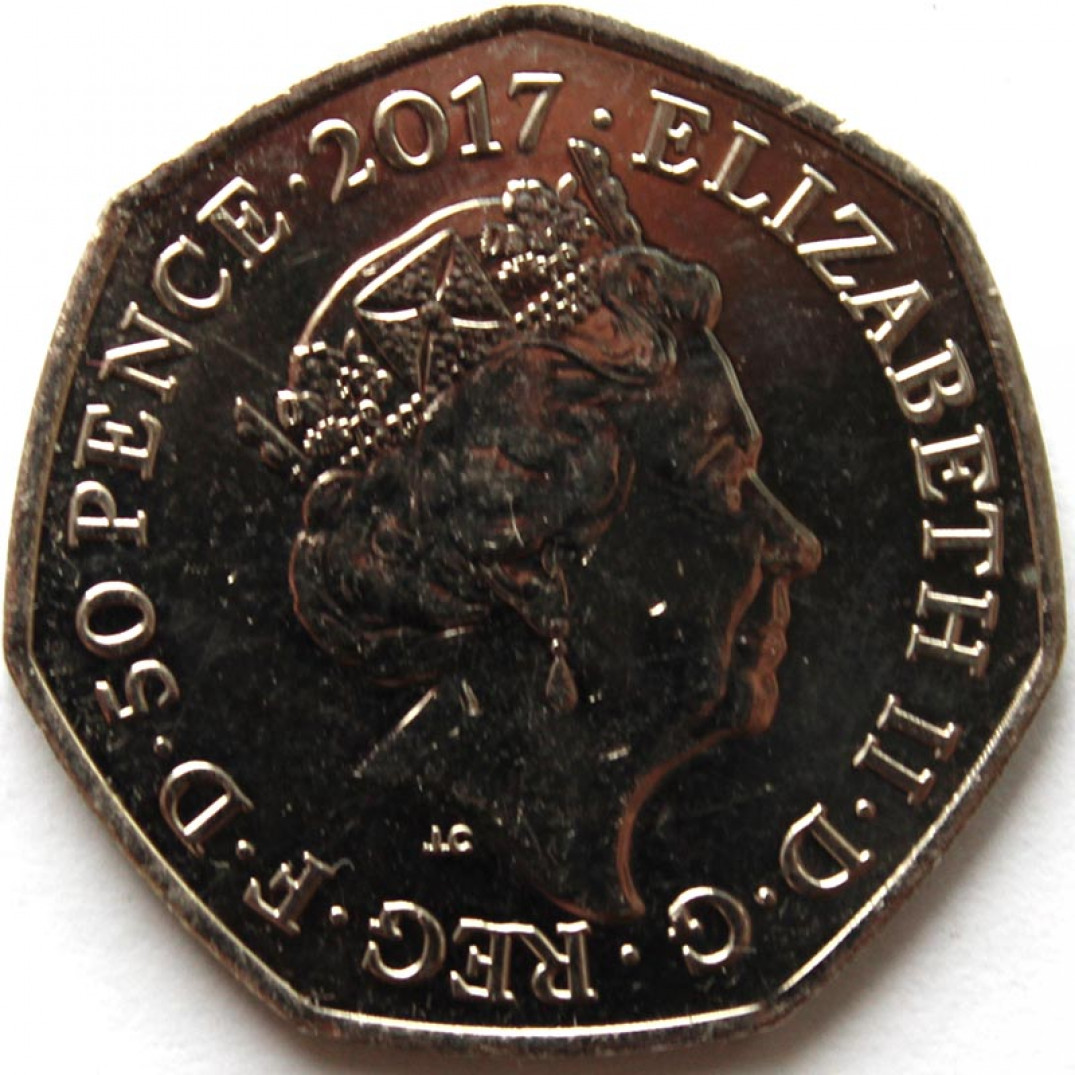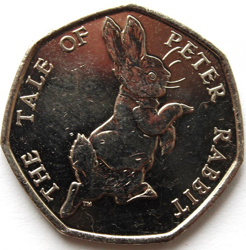 50 пенсов - 150 лет со дня рождения Беатрис Поттер, Кролик Питер, Великобритания, 2017 год