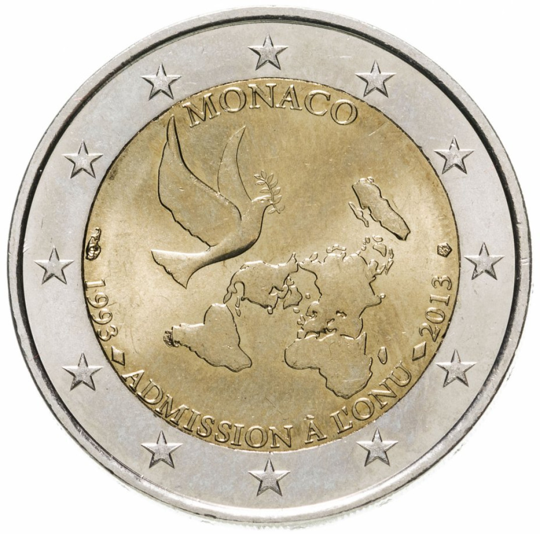 2 евро - 20 лет с принятия страны в ООН, Монако, 2013 год