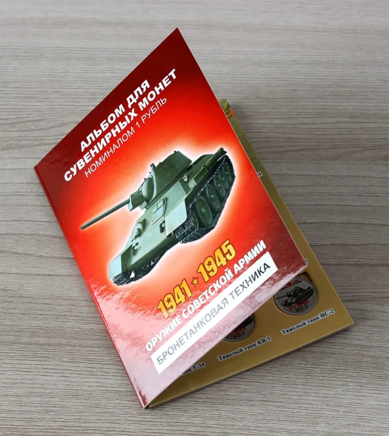Набор монет - Оружие советской армии - Бронетанковая техника, (12 монет в альбоме)
