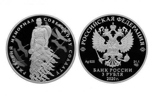 3 рубля - Ржевский мемориал Советскому солдату, 2020 год