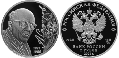 2 рубля - 100 лет со дня рождения Андрея Сахарова, 2021 год