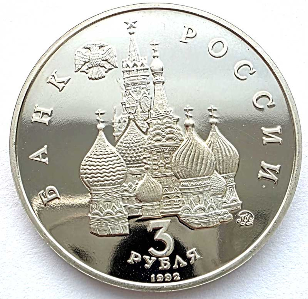 3 рубля - Победа демократических сил России 19-21 августа 1991 года, 1992 год, PROOF