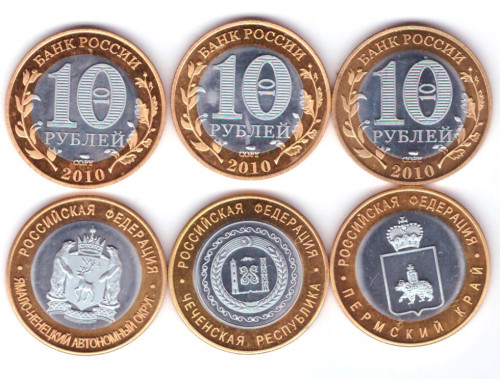 Копии монет - Чечня, Ямало-Ненецкий, Пермский край, 2010 год