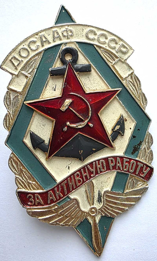 Значок - За активную работу ДОСААФ СССР