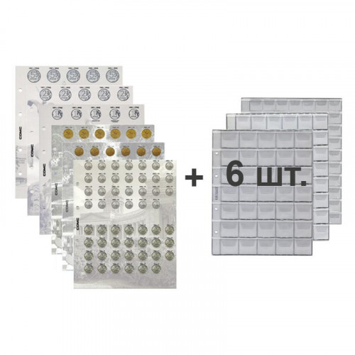 - Описание: Комплект разделительных листов из картона с изображением советских монет регулярного выпуска с 1921 по 1957 гг. В комплекте 7 листов. Номиналы: - полкопейки - 1 копейка - 2 копейки - 3 копейки - 5 копеек - 10 копеек - 15 копеек - 20 копеек - 50 копеек - 1 рубль Листы подходят для альбомов формата "Оптима" 200*250 мм, с изображением монет достоинством: полкопейки, 1, 2, 3, 5, 10, 15, 20, 50 копеек, 1 рубль, 1921-1957 гг. 7 шт.