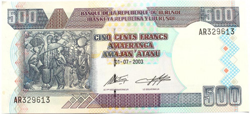 Банкнота 500 франков - Бурунди, 2003 год, UNC