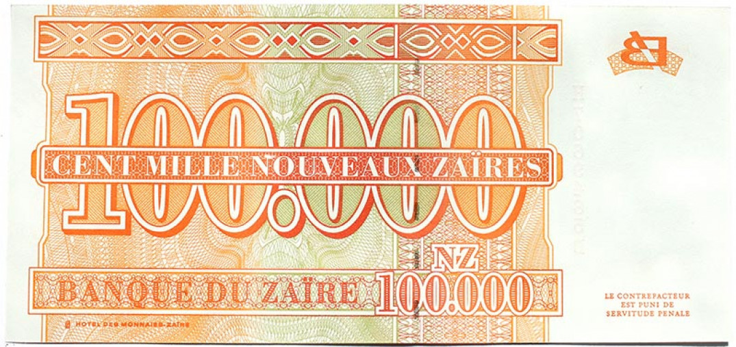 Банкнота 100000 новых заиров 1996 года - Заир, UNC