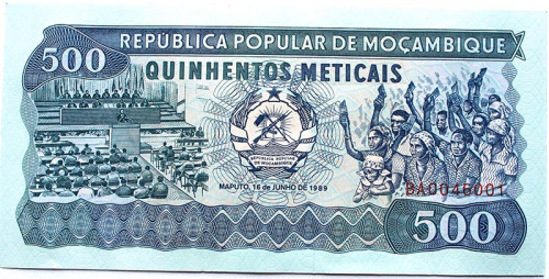 Банкнота 500 метикал - Мозамбик, 1989 год, UNC