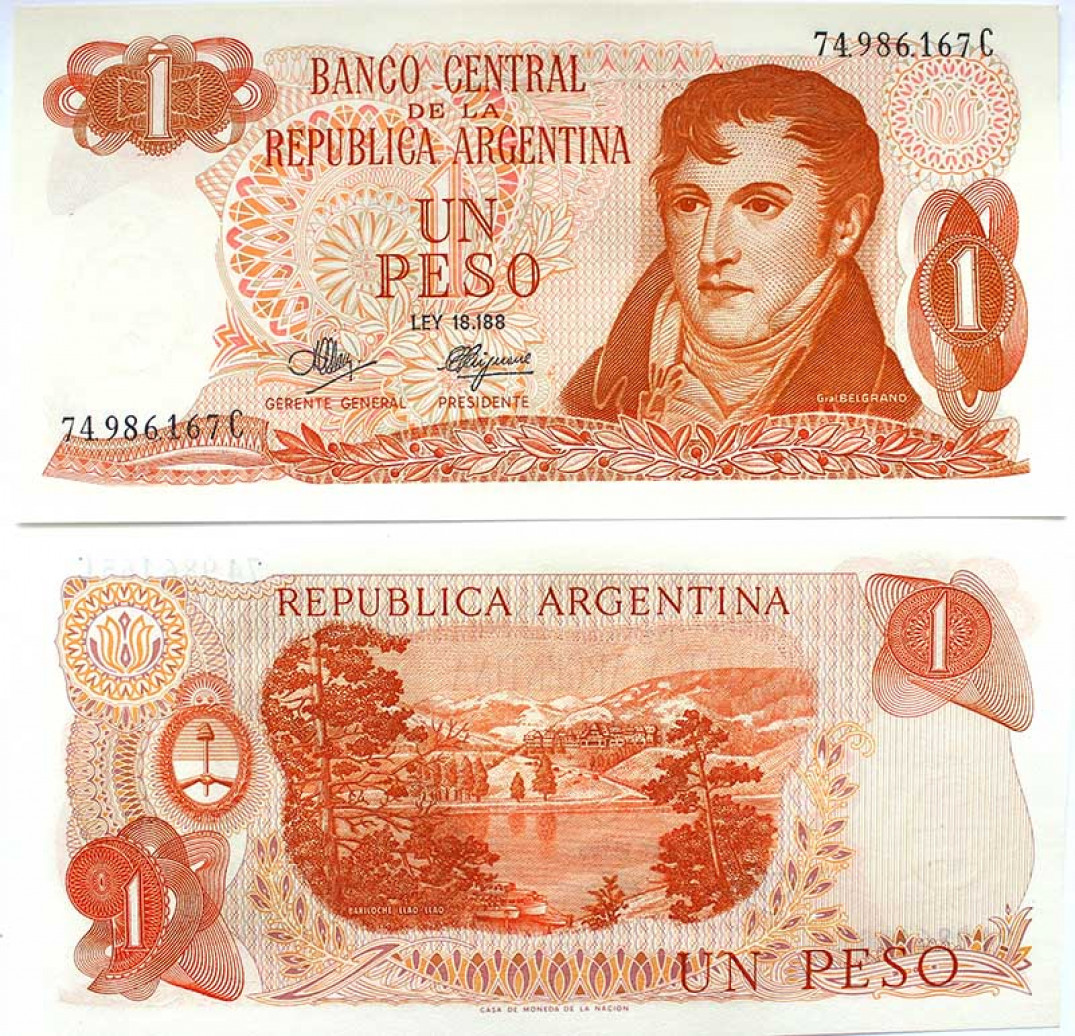 Банкнота 1 песо - Аргентина, 1977 год