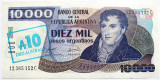 Банкнота 10 аустралей на 10000 песо - Аргентина, 1985 год, UNC