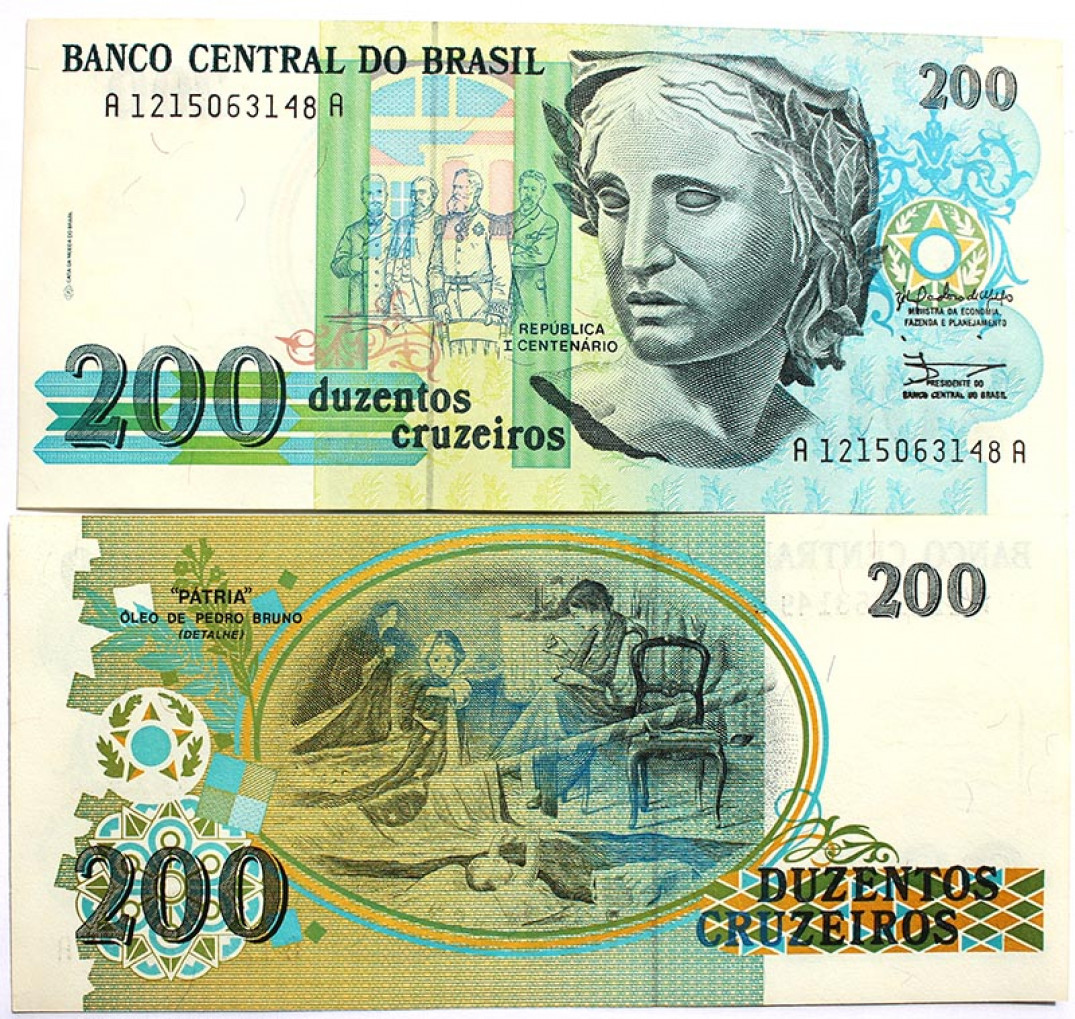 Банкнота 200 крузейро 1989 года - Бразилия, UNC