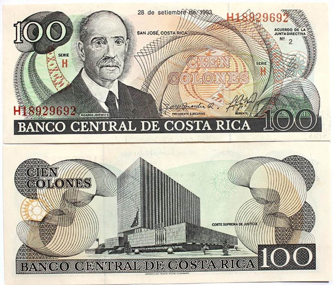 Банкнота 100 колон - Коста-Рика, 1993 год, UNC