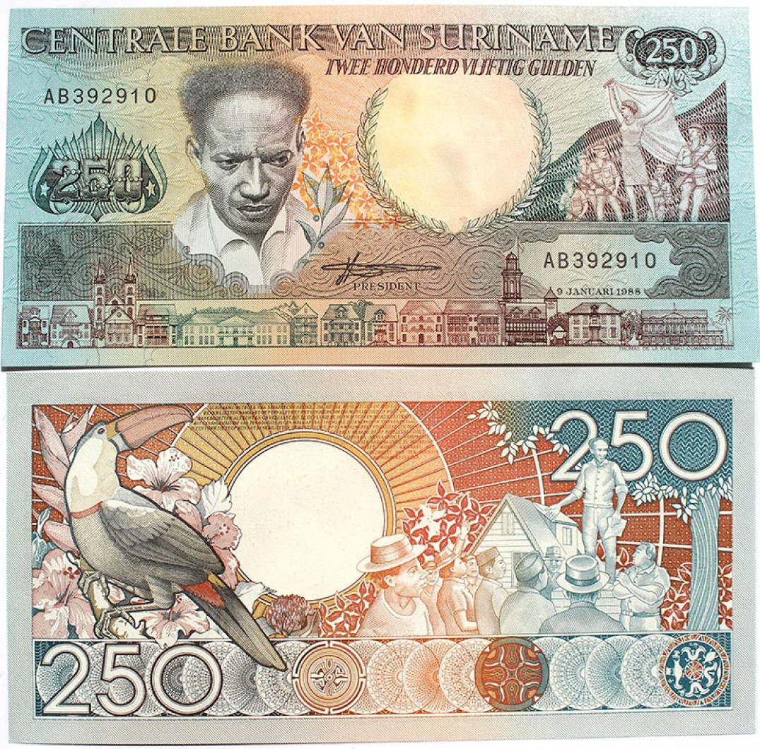 Банкнота 250 гульденов - Суринам, 1988 год, UNC