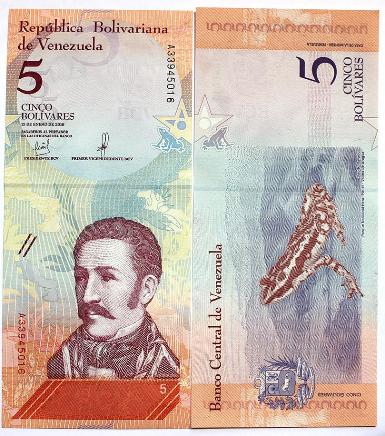 Банкнота 5 боливаров - Венесуэла, 1989 год