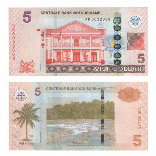 Банкнота 5 долларов - Суринам, 2012 год, UNC