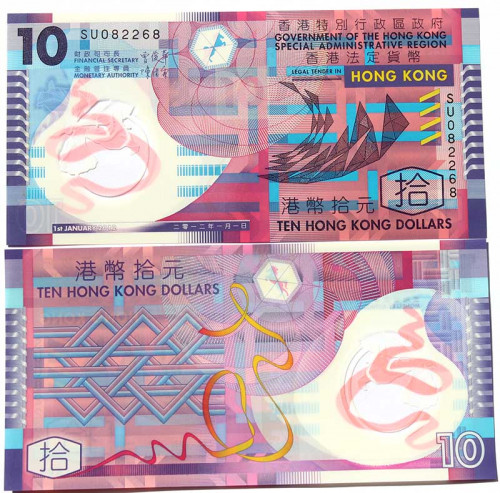 Полимерная банкнота 10 долларов - Гонконг, 2012 год, UNC