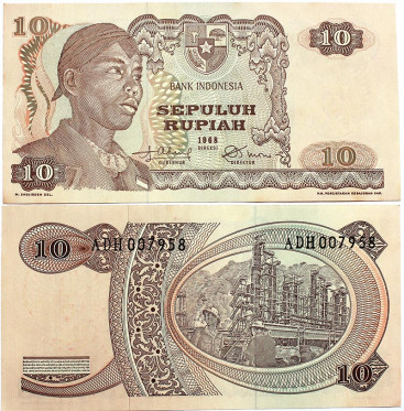 Банкнота 10 рупий 1968 года - Индонезия, UNC