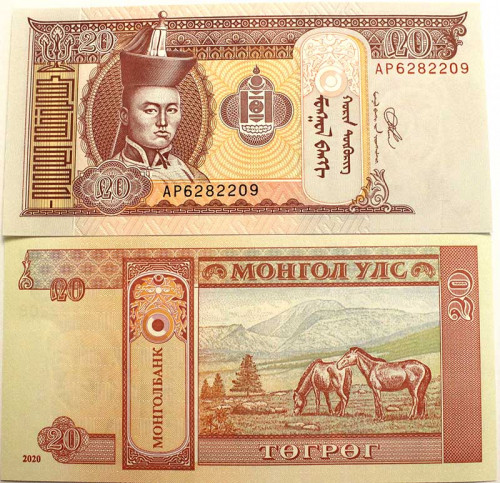 Банкнота 20 тугриков - Монголия, 2020 год, UNC