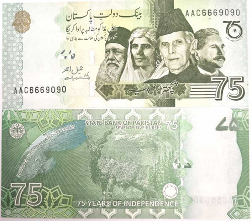 Банкнота - 75 рупий - 75 лет Независимости, Пакистан, 2022 год, UNC