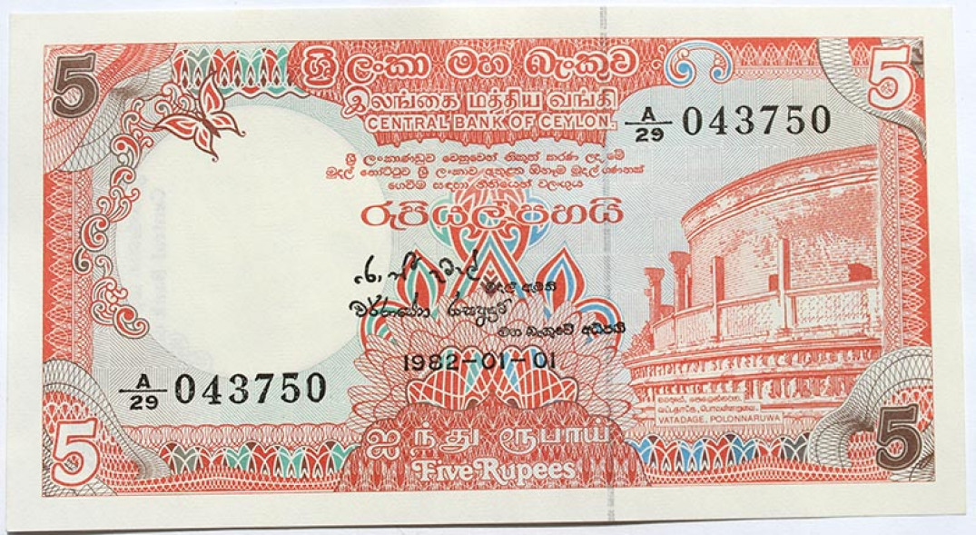 Банкнота 5 рупий - Шри-Ланка, 1982 год, UNC