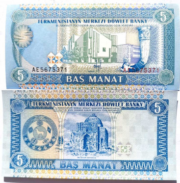 Банкнота 5 манат - Турменистан, 1993 год, UNC