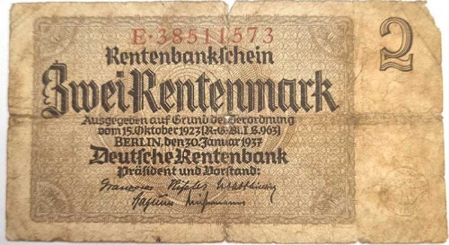 Банкнота - 2 Рентенмарки, Германия, 1937 год
