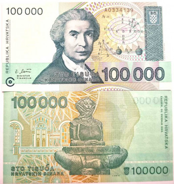 Банкнота 100000 динар - Хорватия, 1993 год, UNC