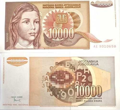 Банкнота 10000 динар - Югославия, 1992 год, UNC