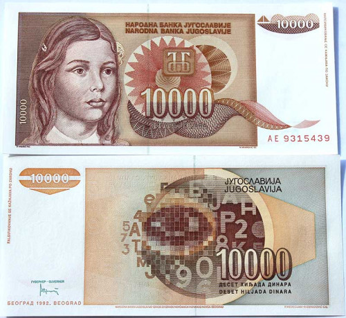Банкнота 10000 динар - Югославия, 1992 год, UNC