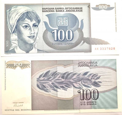 Банкнота 100 динар - Югославия, 1992 год, UNC