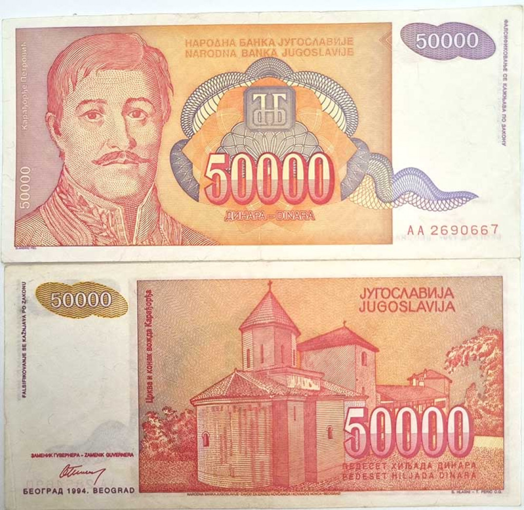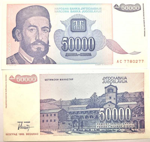 Банкнота - 50000 динар - Югославия, 1993 год, UNC
