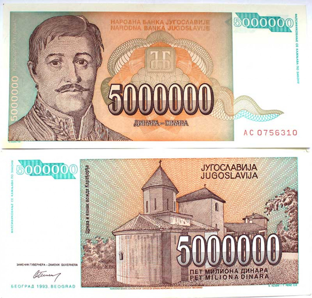 Банкнота 5000000 динар - Югославия, 1993 год