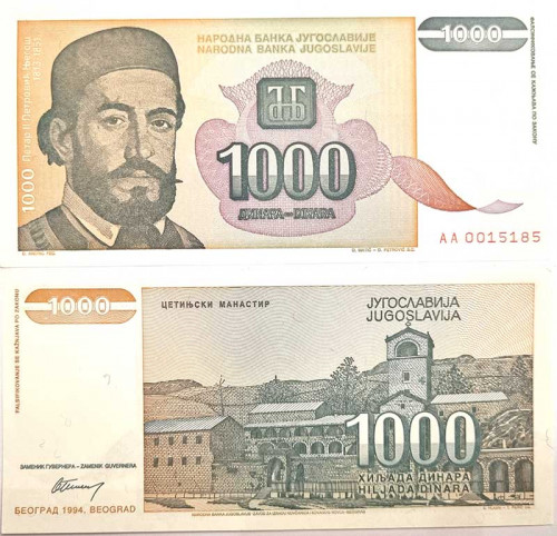 Банкнота - 1000 динар - Югославия, 1994 год, UNC