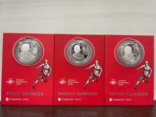 Набор монет - Легенды Спартака, Камерун, серебро (Черенков, Родионов, Симонян)