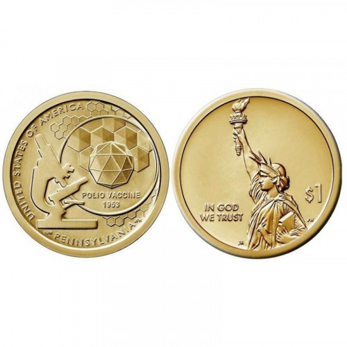1 доллар - "Американские инновации - Вакцина против полиомиелита", США, 2019 год, двор D