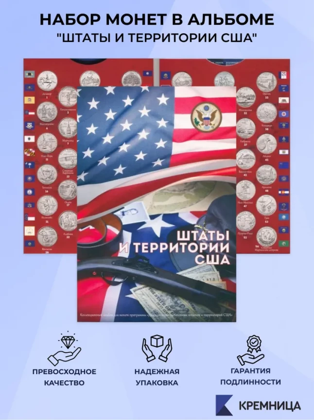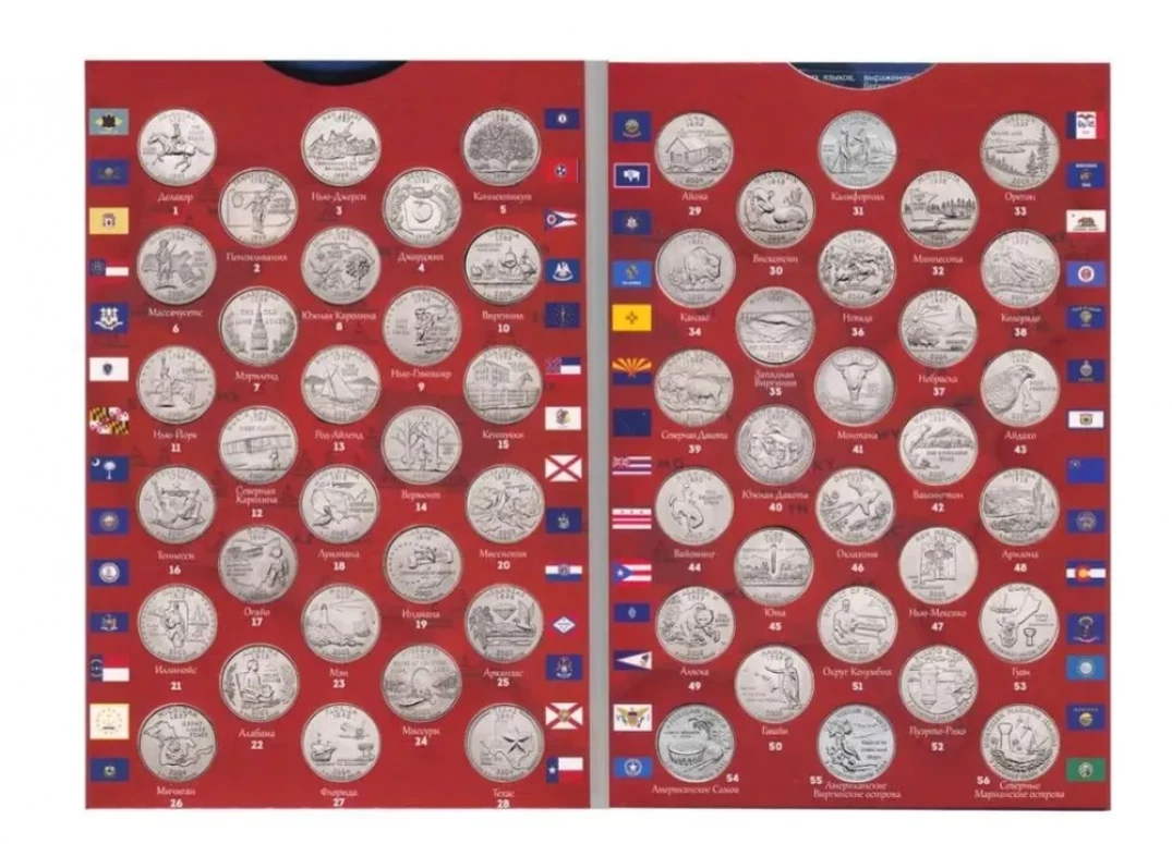 Набор монет "Штаты и территории США", в капсульном альбоме