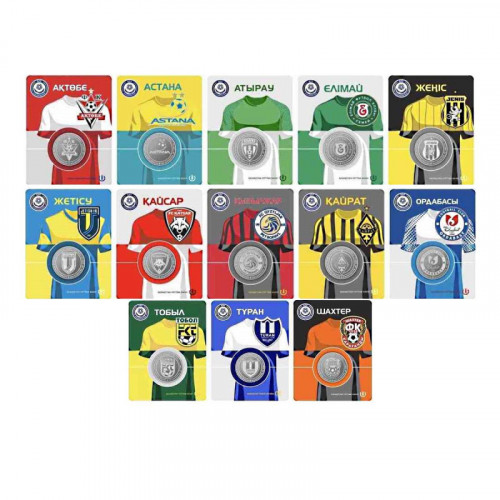 Набор 13 монет 200 тенге - Футбольные клубы Казахстана, Казахстан, 2024 год, (в блистерах)