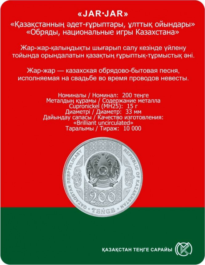 200 тенге - Обряд Жар-Жар, Казахстан, 2023 год, в блистере