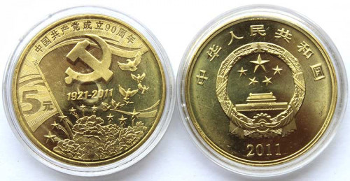 5 юаней - 90 лет Коммунистической партии Китая, Китай, 2011 год