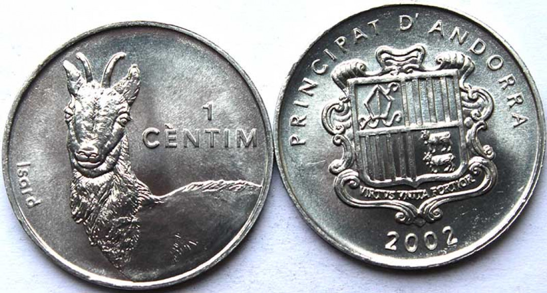 1 сантим - Пиренейская серна, Андорра, 2002 год